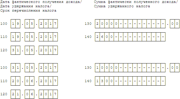 Раздел 2 формы 6-НДФЛ по доходам этого сотрудника будет содержать 2 группы строк.