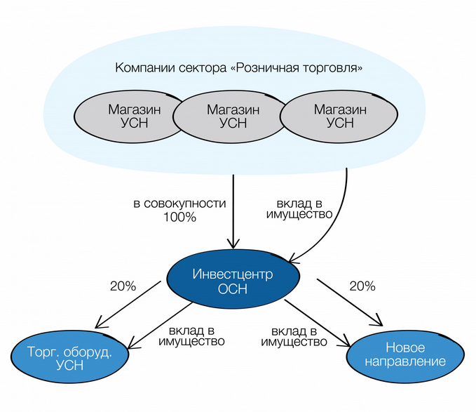 Представим себе бизнес, который ведется в рамках Группы компаний. Розничные магазины являются самостоятельными юридическими субъектами. Компании из сектора розничная торговля соответствуют критериям применения УСН. Если они будут передавать денежные средства далее по любому основанию в группе компаний, например, по «услуговому» договору, то у получателя средств возникнет налог. Для него это выручка. Как быть с накопившейся прибылью каждой операционной точки?