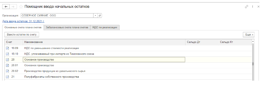 Во-первых, остатки вводятся на последнюю дату, предшествующую дате начала учета в конфигурации. Например, если необходимо начать работу в программе с 1 января 2022 г., то остатки должны быть введены 31 декабря 2021 г.